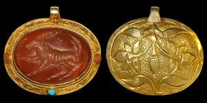Phoenician Gold-Mounted Glass Figural Earring Pair |